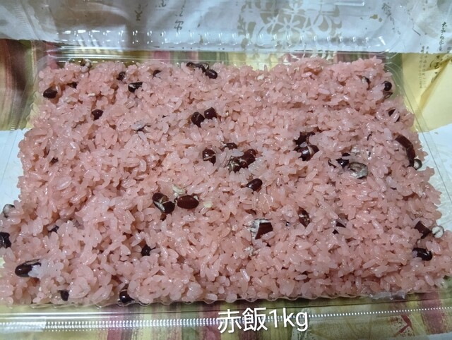 ◎赤飯1kg1800円。もっちりして美味しい。もち米の生産が少なくなる(主食用の米を増産する)今後は価格が高くなるかもなぁ。
