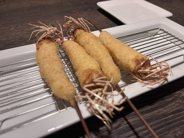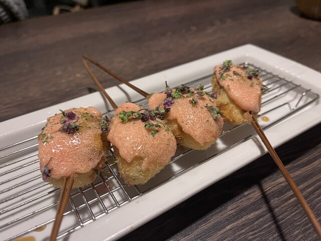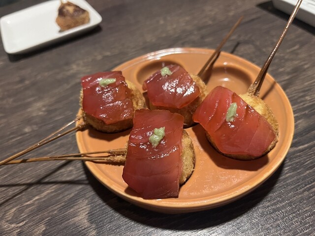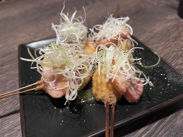 大和西大寺駅から少し歩いた、イオンの裏手にある串カツ料理屋さん。 創作串が評判のお店で、前から気になっていました。 比較的新しいお店みたいですが、結構人気でいつも人が入っています。 たまたま予約なしでも入れたので、行ってみました。 扉がかなり小さく、腰をかがめて入るような感じです。腰を痛めている人には少しツラいかな? 店内はそこまで広くないもののゆったりと座れます。アットホームな雰囲... 詳細を見る