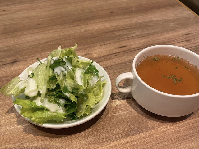 ニクバルダカラでランチ 黒毛牛和風おろしハンバーグ180g ¥1000 ごはんはおかわり自由やそうです ウミャーーーーーーーーーーーー 和風おろしがニャッパリ ジュージューの鉄板で出てくるからジューシー 全メニューに サラダ&スープ付きでした 夜はバルなのでバルの雰囲気というか ワタシの他は誰も居なかったけど 元気な接客の店でした まだ新店かな?で 知られていないのかなー… ... 詳細を見る