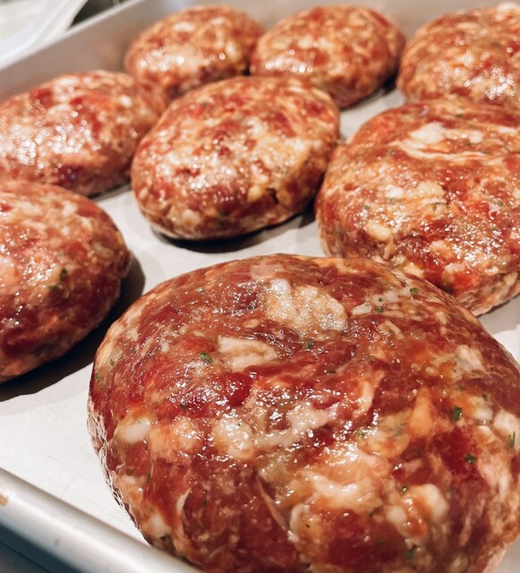 当店こだわりの完成まで3日間かけた鉄板粗挽きハンバーグステーキや