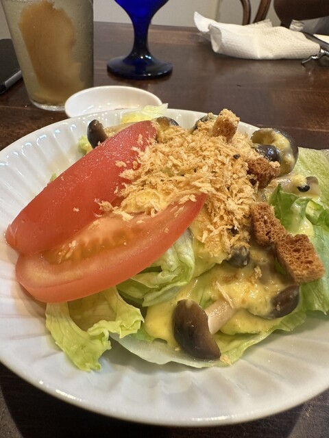 最初に自家製ドレッシングのサラダが出てきましたが、