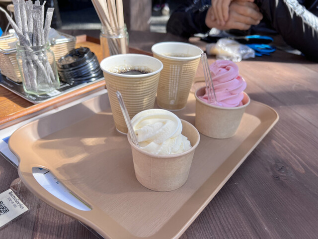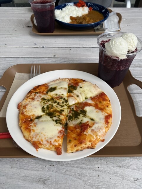 スタバ感覚。ツーリングやドライブ、サイクリングの休憩スポット。有機栽培コーヒー、ロイヤルミルクティー、自家製ブルーベリージュース、ピザ、カレー、アイスクリーム、パスタなど、コスパがいい。 |