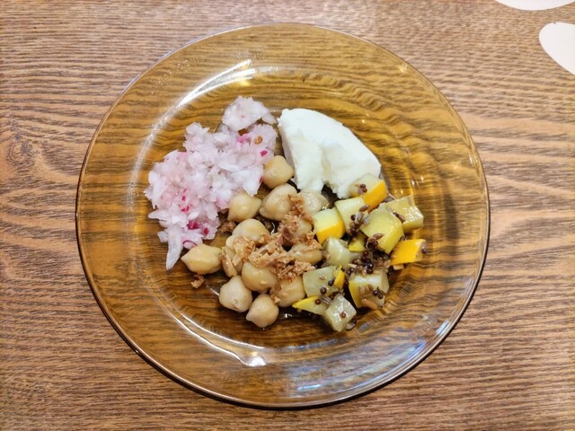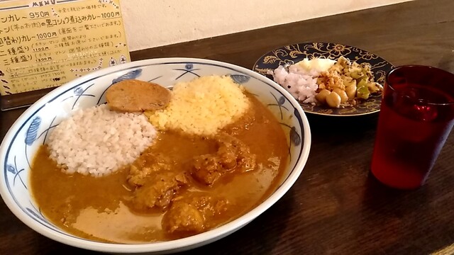 カレーは3種類から「マトンの黒コショウ煮込みカレー」と「週替わりカレー」を選択。週替わりカレーは「豚角とドライジンのカレー」。