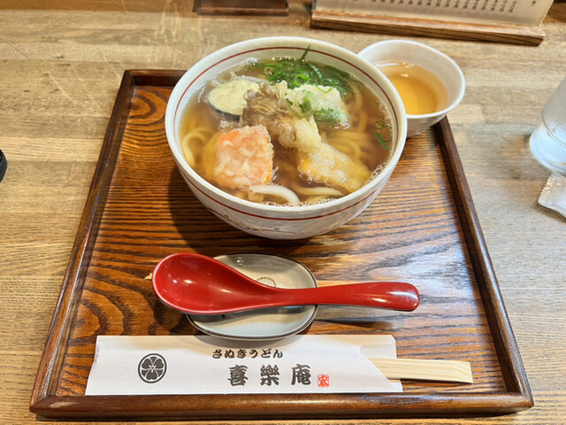 奈良は菖蒲池にあるさぬきうどん店、喜楽庵さんです。 記録をたどると、なんと3年ぶりの訪問、そんなに間が空いているとは思っていませんでした。 お店の横はほぼ毎日通るんですが。。。。 夏真っ盛りですので熱いうどんはやめにして、天ぷらぶっかけうどん(\1,600)を注文です。 10分ほどで配膳。 ... 詳細を見る