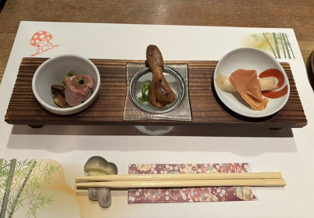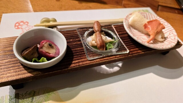 コースの最初から最後まで、きのこ尽くしでした。見た目もきれいで、いろんな種類のきのこが次々と出てきて、食感や味の違いを楽しめました。き...