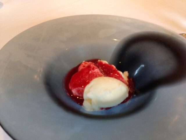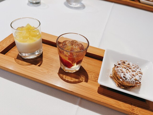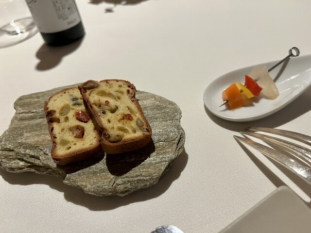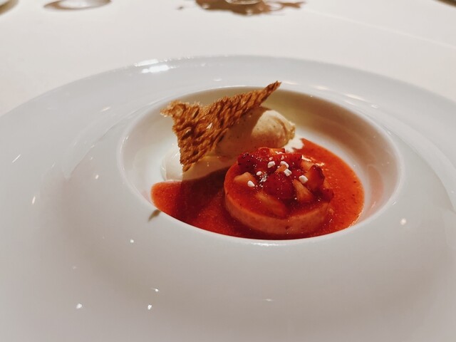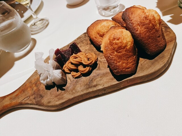 そしてディナーのお楽しみはデザートの締め(3つ目のデザート)に熱々のマドレーヌが提供される事。お腹いっぱいで最後に焼き菓子はかなりきついのですが美味しくてペロリです