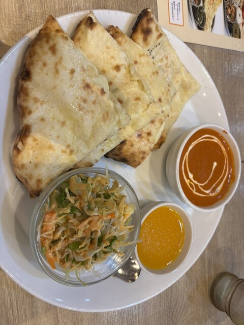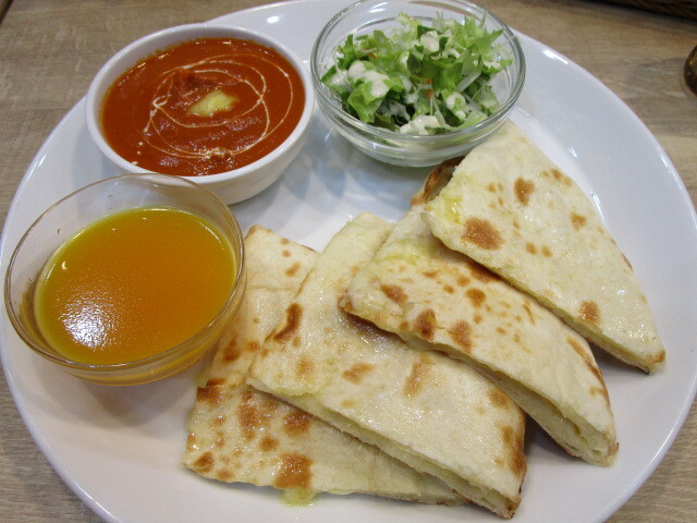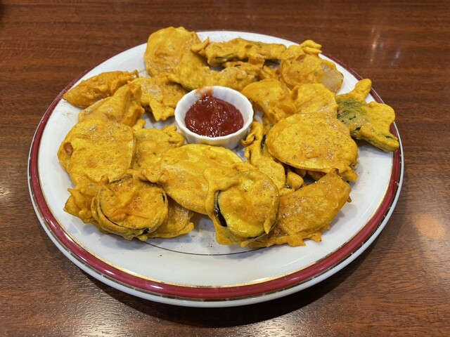 セットはあきらめて、サイドメニューからベジタブルパコラとチ—ズナンを注文。