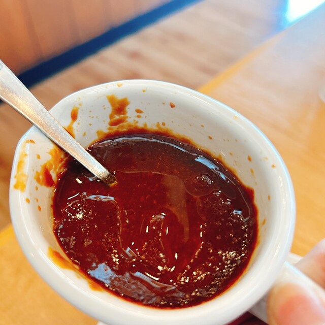 卓上のソースで味変もできる。