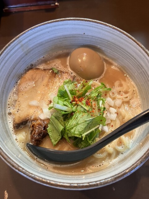 三輪山を登拝した後、近くにある奈良屈指の人気店へ。オートバックスと駐車場共用なので停めるスペース無限にあるって感じですね。 注文したのは 「味玉つけ麺 並」 チャーシュー... 詳細を見る