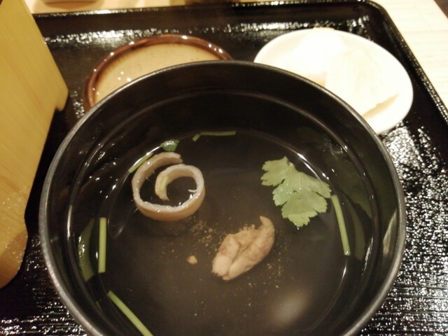 肝吸い。デザートはオレンジ。