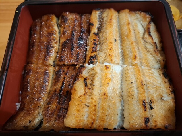 普通の鰻二切れ白焼き二切れ。