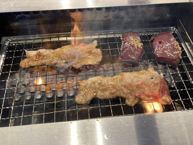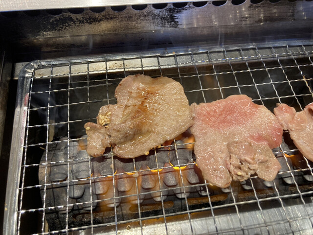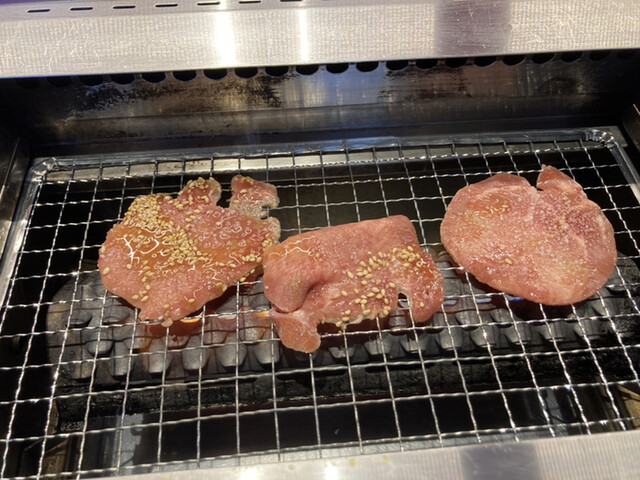 ■贅沢ランチ1958円 ◎黒毛和牛カルビ(単品657円)、軽く焼いて食べられる薄いスライス。柔らかく食べやすいから、ご年輩にも安心。 ◯ハラミ(単品767円) △厚切り牛タン... 詳細を見る