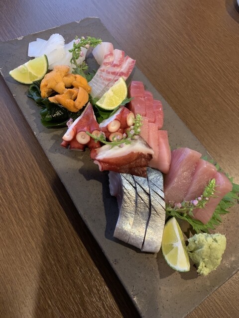 まずは刺身の盛り合わせで乾杯。刺身は普通に美味い。しかしこの界隈なら...