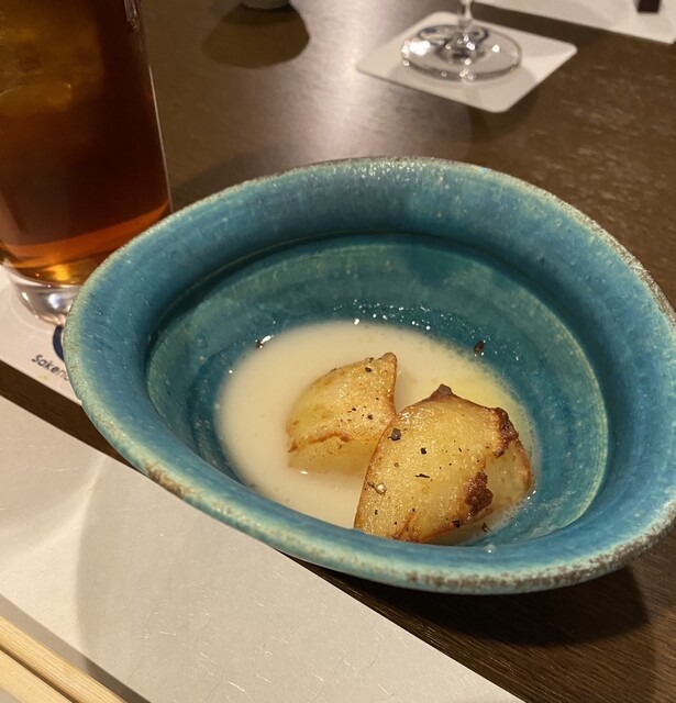 この日のお通しは温かなスープ(すり流し)