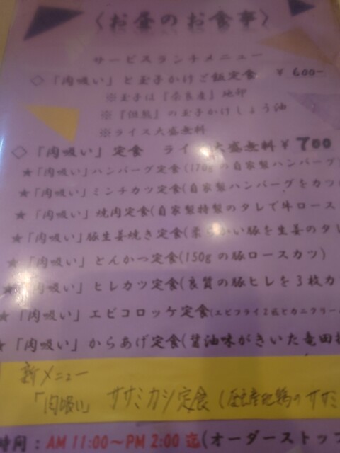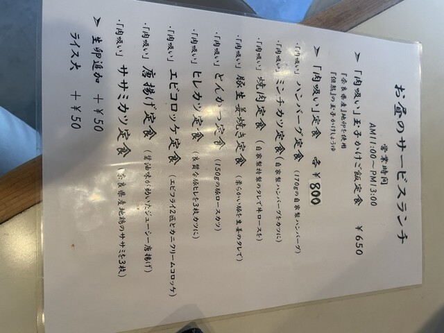 ランチセットのハンバーグ肉吸いセット、生姜焼き肉吸いセットをオーダー。