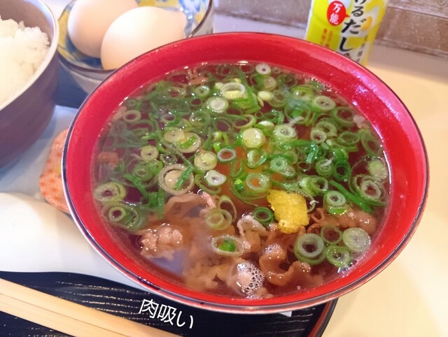 久しぶりに来店。以前より100円値上げしてたけど、今時値上げしてない店の方が珍しいかもね…。普通に注文して配膳されて気付きました、この店はマストで大盛りの店だったと…。肉吸い(温泉卵入り)とご飯だけで...