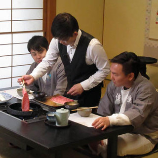 ※当店のスタッフにすき焼きを焼かせて頂く場合は別途お食事代合計の10%のサービス料を頂きます。 |