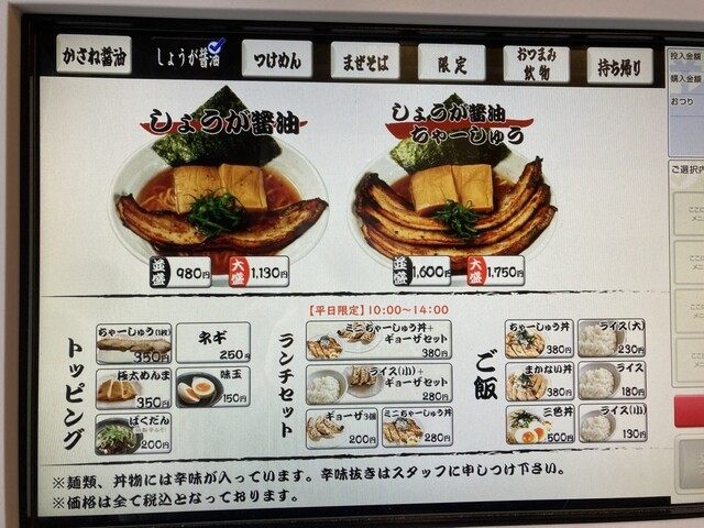 入口のタッチパネル式食券機で迷わずポチッとして席にレッツゴーです。