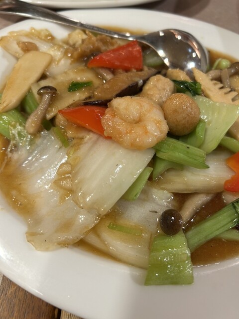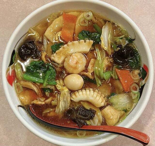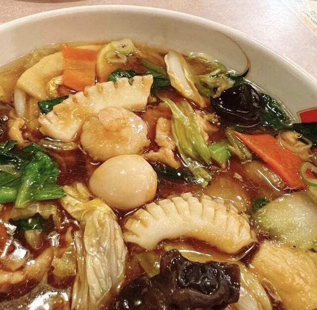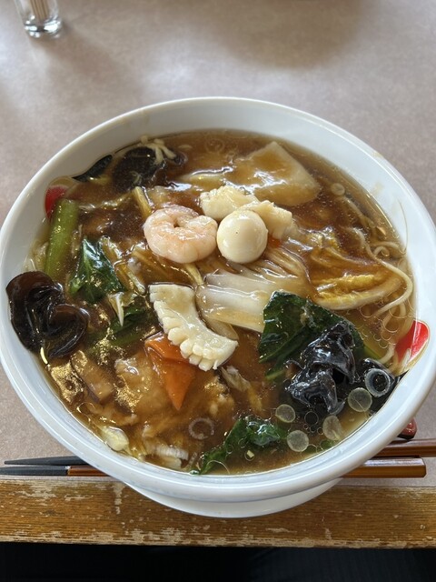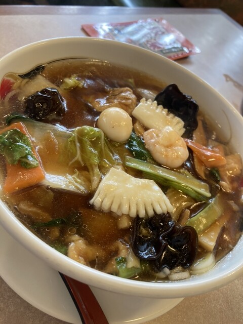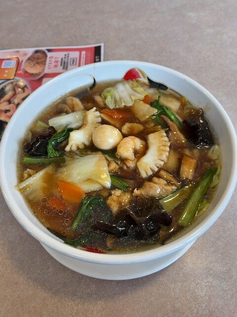 五目旨煮めんか全とろ麻婆麺にしようと思って来店したのですが、海鮮めんに惹かれました…