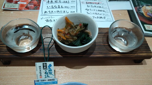 三件目として夜に初訪問させていただきました。新潟の美味しい地酒とともにもずくの天ぷらなどをつまみつつ楽しませていただきました。店員さんの対応も良く、日本酒、食べ物ともにとても美味しかったです。ごちそう...