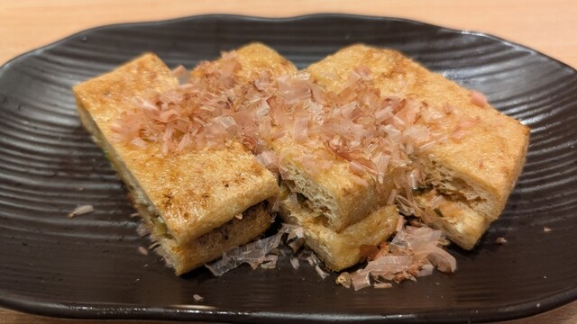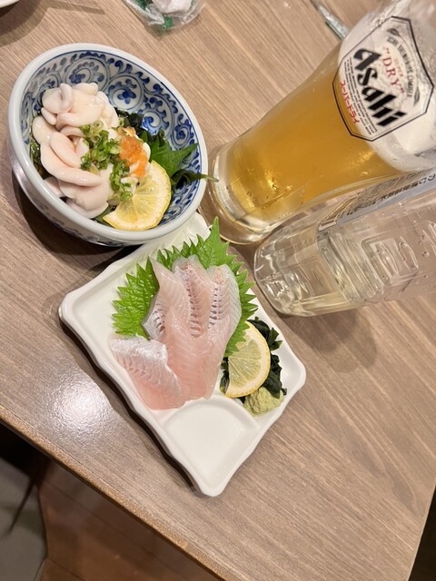 行くはずのお店が満席でその向かいのこの居酒屋に飛び込み。南蛮えびの刺身はおいしかったです。日本酒もいただきました。栃尾のアブラ揚げもおいしかったです。が、やっぱり一人で居酒屋は割高。スマホ注文だけど、...
