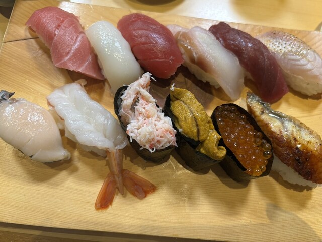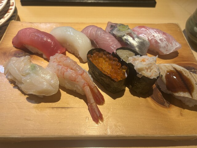 ものすごくたくさんのお客さんがおられ、1時間待ち。規模の大きなお店だから仕方ないかもしれませんが、どこか余所余所しくマニュアル対応が気になりました。シャリは多め、ネタは節制しているかもしれない、という...