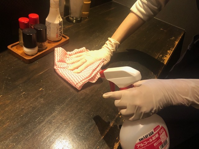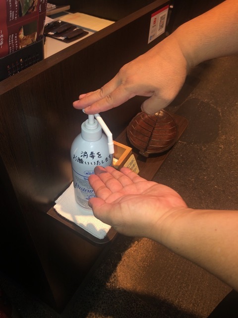 アルコール消毒の徹底 (by お店)