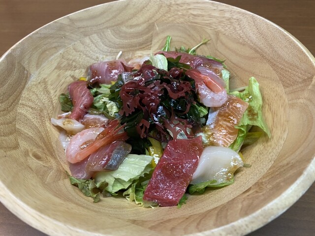 地物近海産魚介の和風サラダ (by お店)