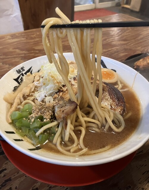 土曜日の11時50分頃に伺いました。 満席で、5分ちょっと待って着座することができました。帰る頃には行列ができていました。 焦がし醤油ラーメン、大盛、背脂を食べました。... 詳細を見る