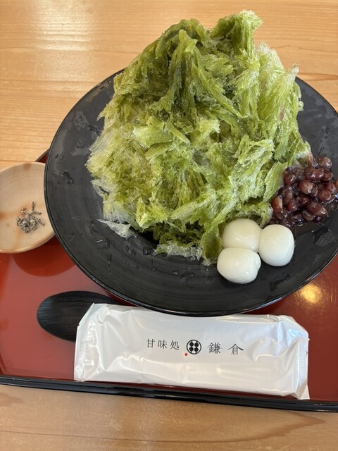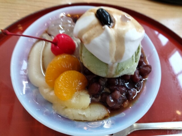 宇治金時白玉付きは、見た目も涼しげで上品な一品。ふわふわに削られた氷は口に入れるとすっと溶け、抹茶の香り高いシロップと小豆の自然な甘さが絶妙に重なる。白玉はもちもちで食感のアクセントとなり、全体をより...