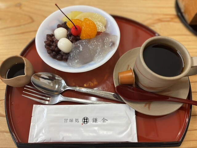 わらび餅の入ったあんみつとコーヒーのセットを頂きました。