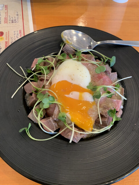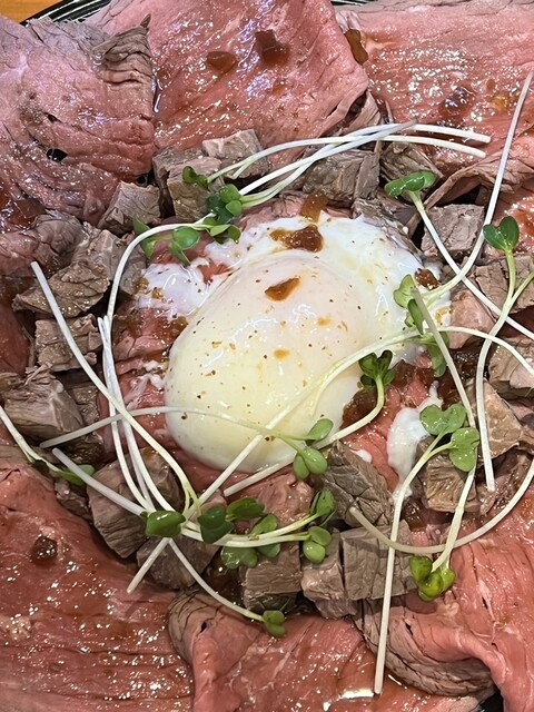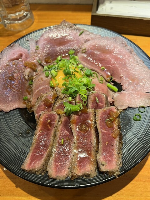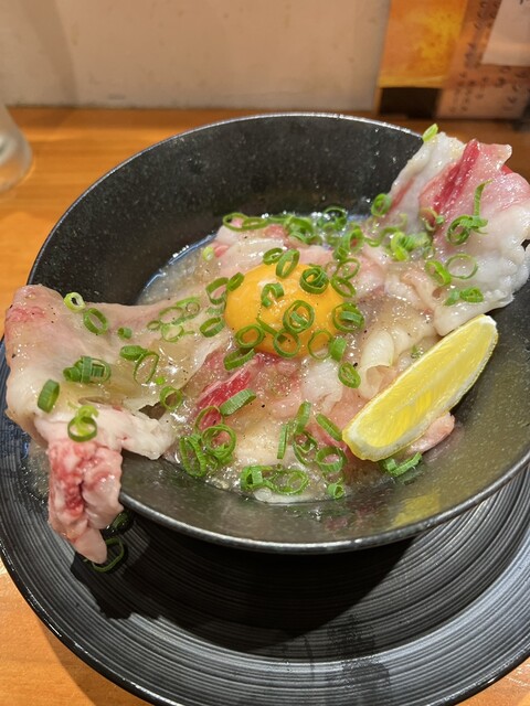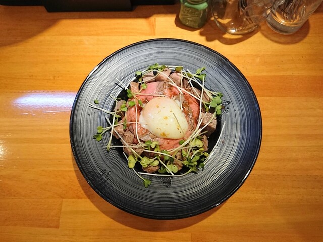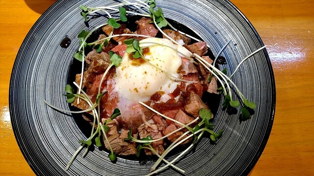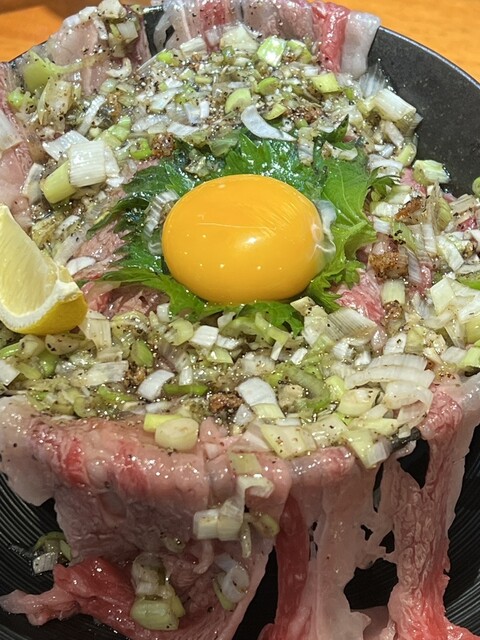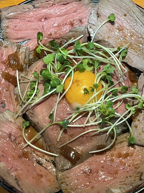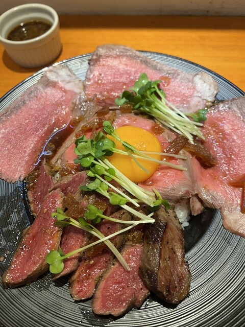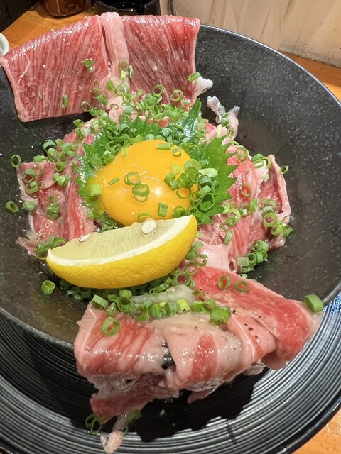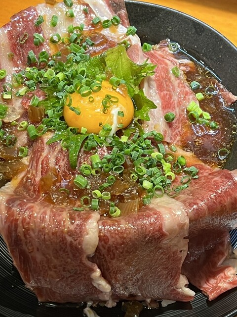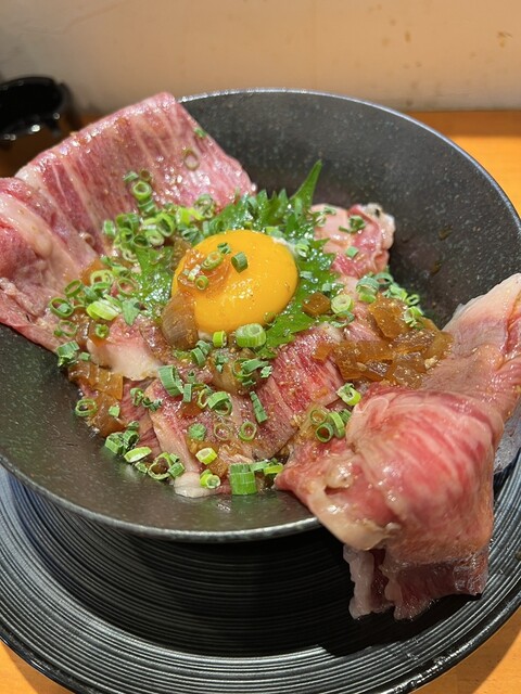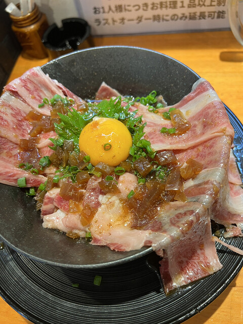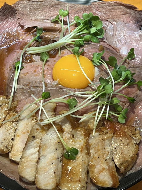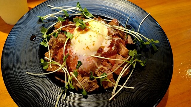肉の香ばしさとジューシーさが口いっぱいに広がります。中央にはとろりとした温玉が添えられており、割ると濃厚な黄身がソースのように絡み合い、さらに深みのある味わいに。特製のタレもご飯との相性抜群で、最後の一...