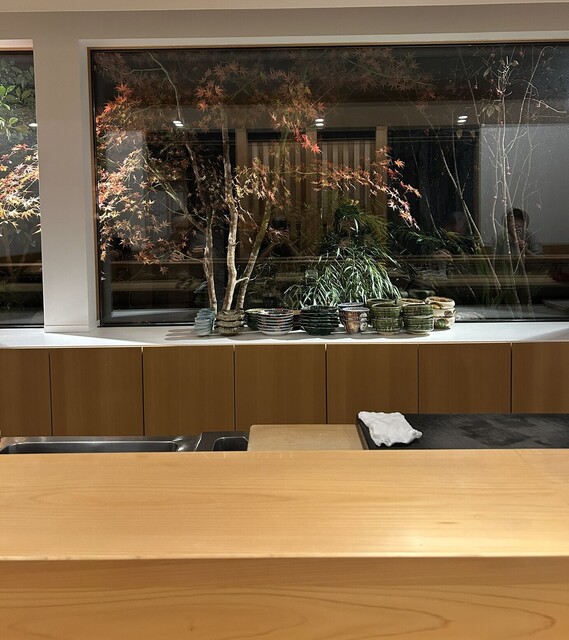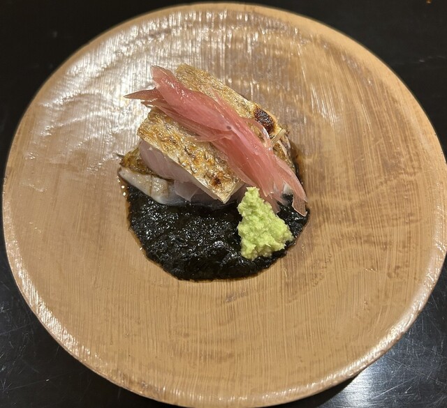 南蛮海老の味噌乗せとフォアグラの味噌漬けは酒泥棒当確な味わいで、村上の塩を振ったアラやコチの昆布締めは魚の練れた旨み全開で、鮎焼きは鮎のカリサクでサクふわな食感と茄子のもったりしたとろみの双方が燻し香を纏っていて、獅子唐(ししとう)味噌とサザエのグラタンは獅子唐の辛味とサザエのコリコリ食感の熱々絶妙なカップリングに散らした茗荷が涼やかで、〆の土鍋ご飯はスズキのカマの唐揚げ...