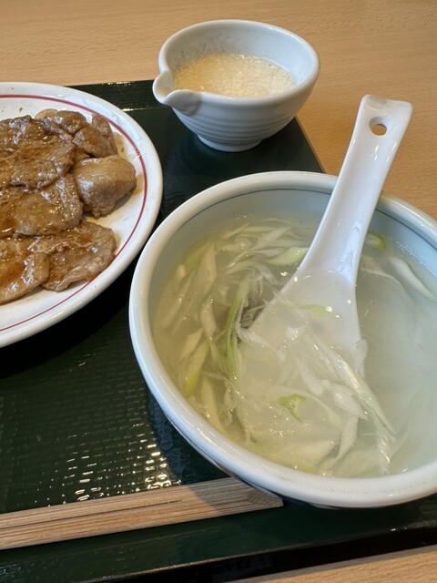 以前仙台の味太助さんで牛たん定食を食べた際に最初に飲んだテールスープで火傷したので今回は慎重にフーフーしたらあまり熱くなかった。仙台のテールスープはシッポが入っていましたが今日のは小さい肉のかけらだけ...
