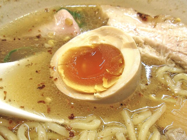塩貝出汁煮卵RAMEN 1200円 初訪問で貝塩を食べ、その後塩山椒、そして何回か醤油。 今回が久しぶりに貝塩にしました。 やっぱり美味しい。今時の若いイケメン店主さん... 詳細を見る