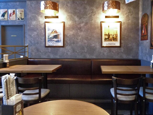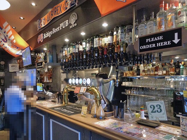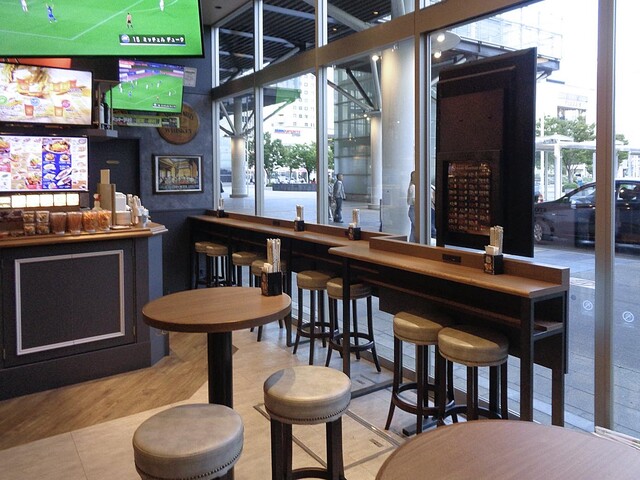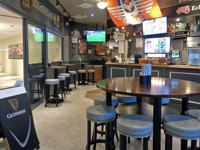 店内は,ブリティッシュパブとスポーツバーを合わせたような雰囲気です(観戦用モニターあり).南口広場側がガラス張りになっており,開放感もありました.