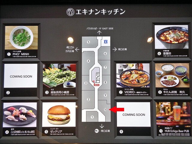 店は,新潟駅ビル『CoCoLo 新潟』の1階ウエストサイド,『エキナンキッチン』の一角にあります(写真参照).