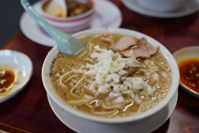 燕三条背脂ラーメンの元祖として知られる「杭州飯店」で、看板のラーメンと餃子をいただきました。