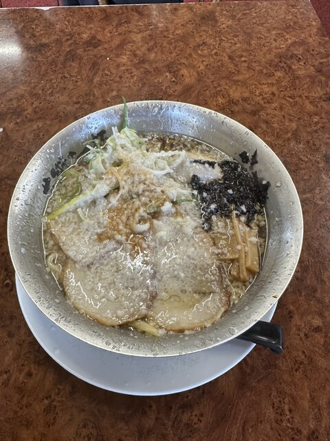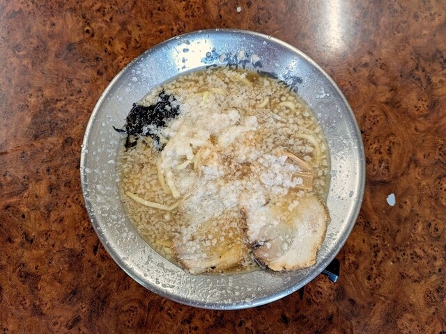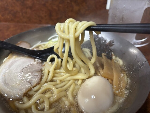 背脂の多さの割にスープはほどよい濃さ、岩のりがほんのりと和...