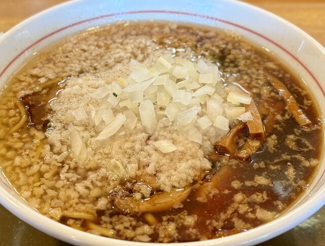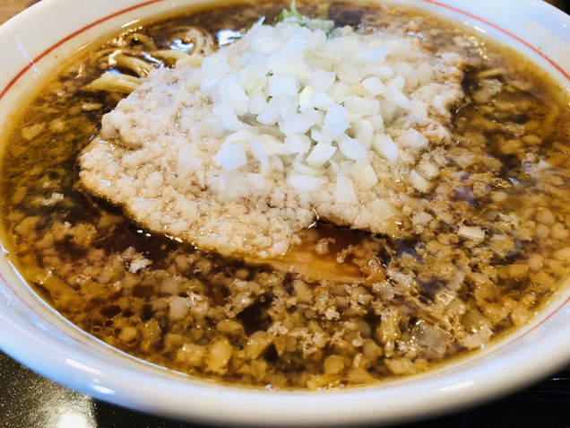 臭みのない上質な背脂にキリッとした醤油と煮干しスープ。そこに合わせるのは丸型の中細麺。この麺がとても舌触りが良くてツルツル麺。