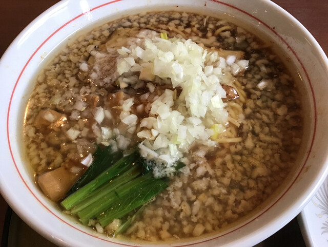 小さめなチャーシューが4枚ほどと、ほうれん草、メンマ、刻み玉ねぎのトッピング。