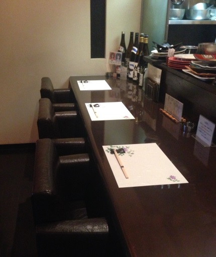 時間通りに行くと、テーブル席とカウンター席がありましたが、一番奥のカウンター席に案内されました。