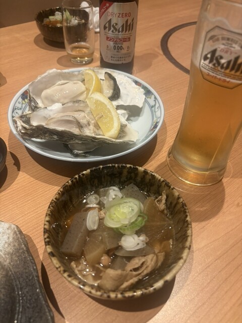 生牡蠣が塩で頂けて新鮮ぷりぷりで濃厚。