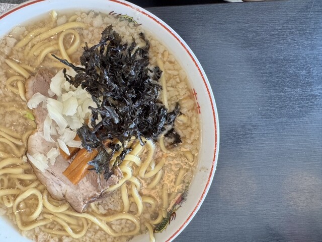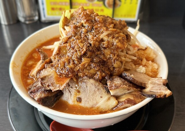 燕市『燕三条中華そば 鬼にぼ』さんです。 ◎「鬼じろう」¥990 (大盛無料) ・ニンニク普通・脂普通・野菜マシマシ ⚪︎「餃子5個」¥550 今回は... 詳細を見る