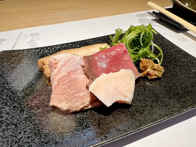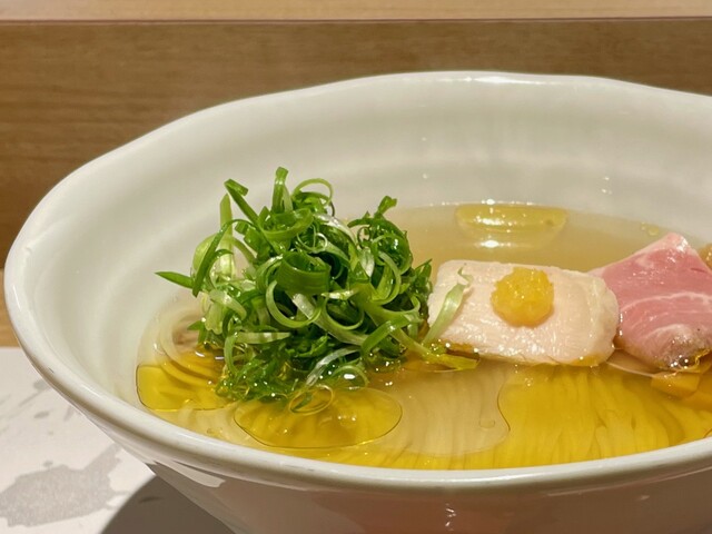 昆布水のつけそば(1200円) +太麺変更(100円) +ラー油変更(50円) +味玉(ラーパス使用) お店のインスタておすすめしていた太麺、ラー油変更で頂きました 太麺はモチッとコシがあって、昆布水自体にしっかりと旨みがあるので、何もつけないでも、麺だけで十分旨いです 逆に、つけ汁... 詳細を見る