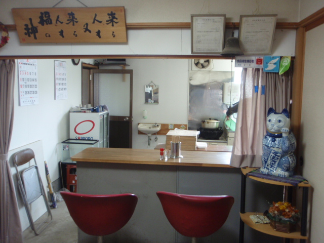 車が便利。真野・新町から県道65号を両津方面へ、2分。道路右側の家の塀にちいさな看板あり。 |