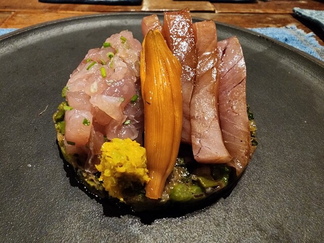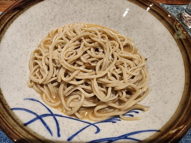 友人との佐渡旅行中に予約して訪問、Aコースを注文した。スタートはだし巻き卵(醤油も自家製)、ワラサの唐辛子添え、野菜の天ぷら、蕎麦は色々あったが鬼胡桃のつけだれの蕎麦がベスト。店員... 詳細を見る