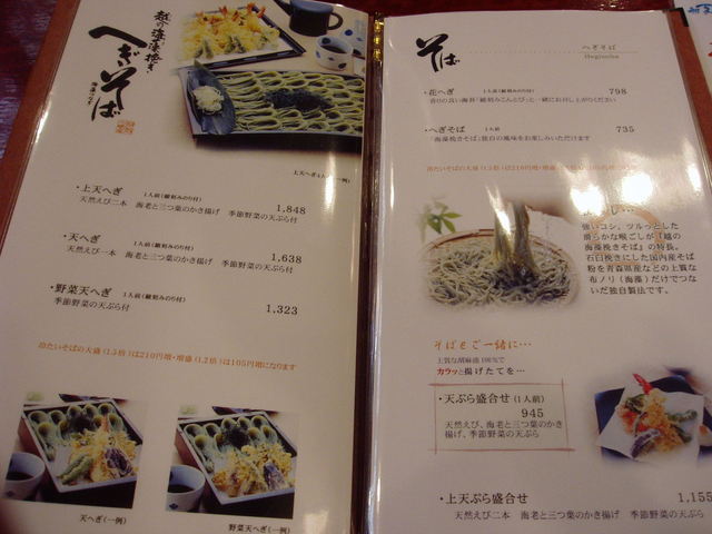 お昼時に長岡駅に寄った時に何か食べようと駅中のレストラン街を回りました。ここの店は客待ちができていたので、おいしいのかなと思って入りました。美人の店員さんに案内されて出してもらったそば茶は、おそばの香ばしい匂いがしてとてもおいしいお茶でした。新潟名物のへぎそばがあるということなのでそれを食べることに決め、メニューを見ると一人前ではちょっと足りなそうなので花へ魏大盛り(1.5人前)を注文しました。