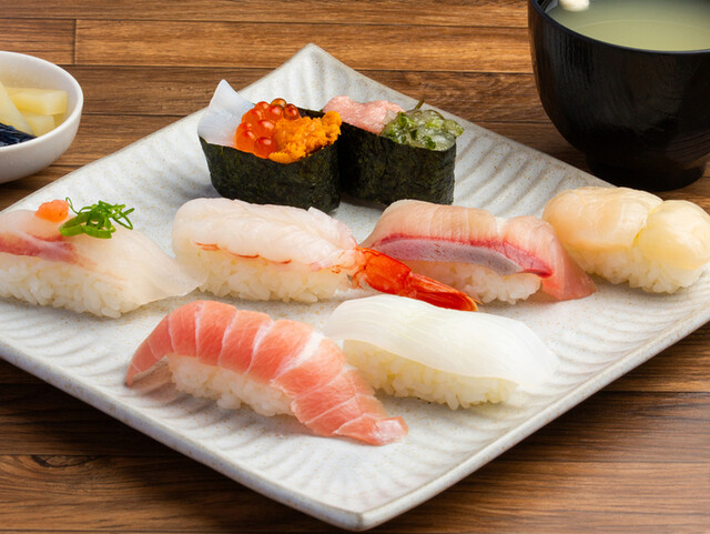 赤身(ちょっと脂がのっている)、イカ、...