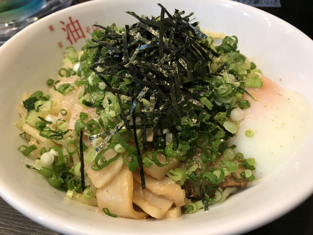 2025年3月2日 再訪 連れと久しぶりの訪店。 13時20分に入店、店内ほぼ満席と盛況。 焼豚油そば特盛1130円 細麺 葱胡麻120円 半熟卵120円 202... 詳細を見る